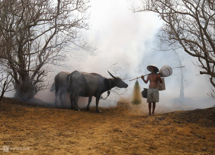 Một lão nông ở thôn Thuận Hòa B cùng đàn trâu trong rừng ngập mặn Rú Chá.